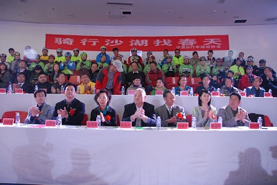 儀式上,首期參加“沙湖春季小學(xué)堂”課外教學(xué)親子游的師生和家長們發(fā)出了“與鳥類同呼吸、共命運,共享碧水藍(lán)天”的主題倡議;30多名寧夏自行車運動協(xié)會會員,從40余公里外的銀川市沿銀川至石嘴山同城化公路一路騎行到儀式現(xiàn)場,他們將此舉比喻為“騎行沙湖找春天”,倡導(dǎo)環(huán)保、低碳、健身、時尚之旅。