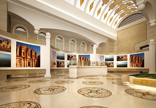 走進(jìn)展館里面,首先映入游客約旦哈希姆王國(guó)幾個(gè)大字,這樣也是將展館內(nèi)部的異域風(fēng)情顯現(xiàn)的是淋漓盡致,展館里面還擺放著很多展品供游客進(jìn)行參觀(guān),大家既可以看到石器時(shí)代的石器,青銅時(shí)代的青銅也可以看到古羅馬時(shí)期的短劍和面具,同時(shí)為了全方位展示約旦國(guó),整個(gè)展館也是通過(guò)音視頻資料,LED大屏,3D沙盤(pán) 以及運(yùn)用聲光影像等高科技手段,來(lái)全方位展現(xiàn)約旦國(guó)的發(fā)展情況。